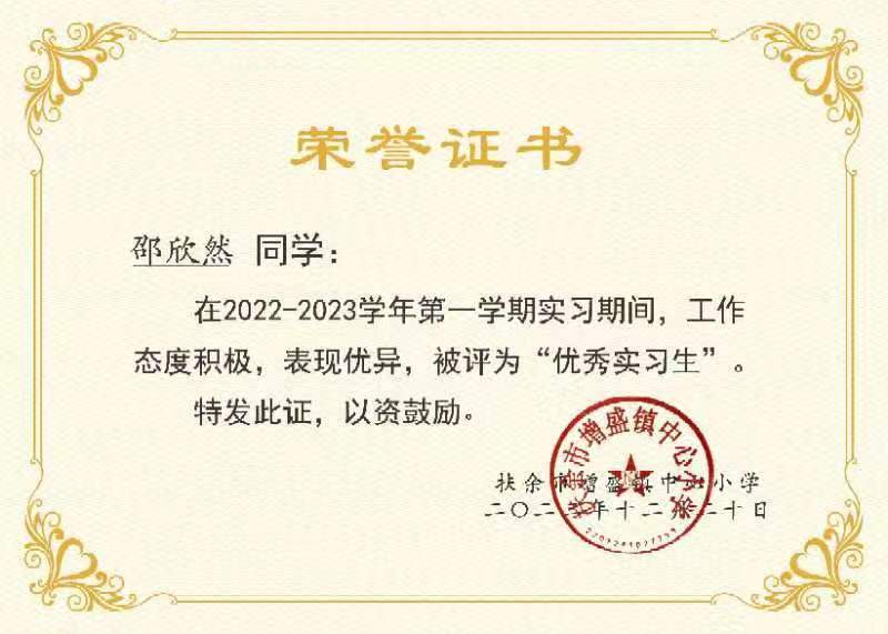 邵欣然系我院英语专业2019级学生,在扶余市增盛镇小学实习期间主要负责五年一、二班的英语课程及三至五年级音乐课程教学工作,同时担任学校少先队兼职辅导员,协助德育处开展学团工作。感谢信提到,邵欣然同学团结同志,敢于吃苦,虚心好学,服从学校领导安排的各项工作任务和要求,严格执行实习生守则,工作主动认真,能够积极完成各项工作任务,具有良好的师德修养,受到学校师生和领导的一致好评,并授予邵欣然同学“优秀实习生”荣誉。(审核人:罗学锋)