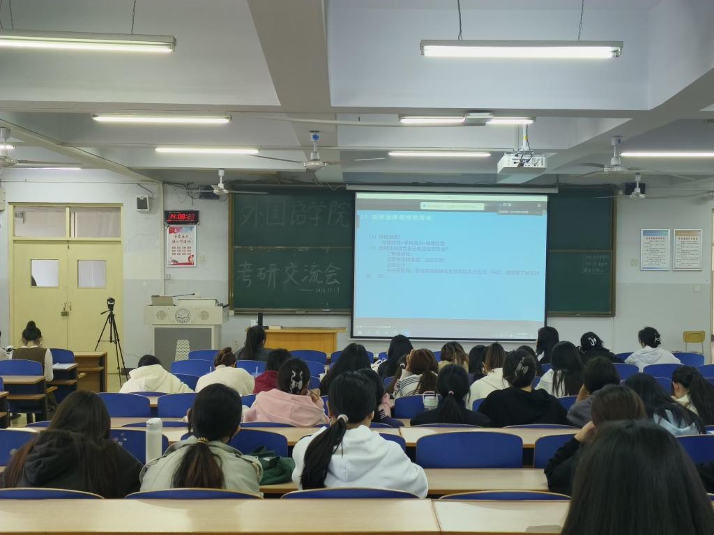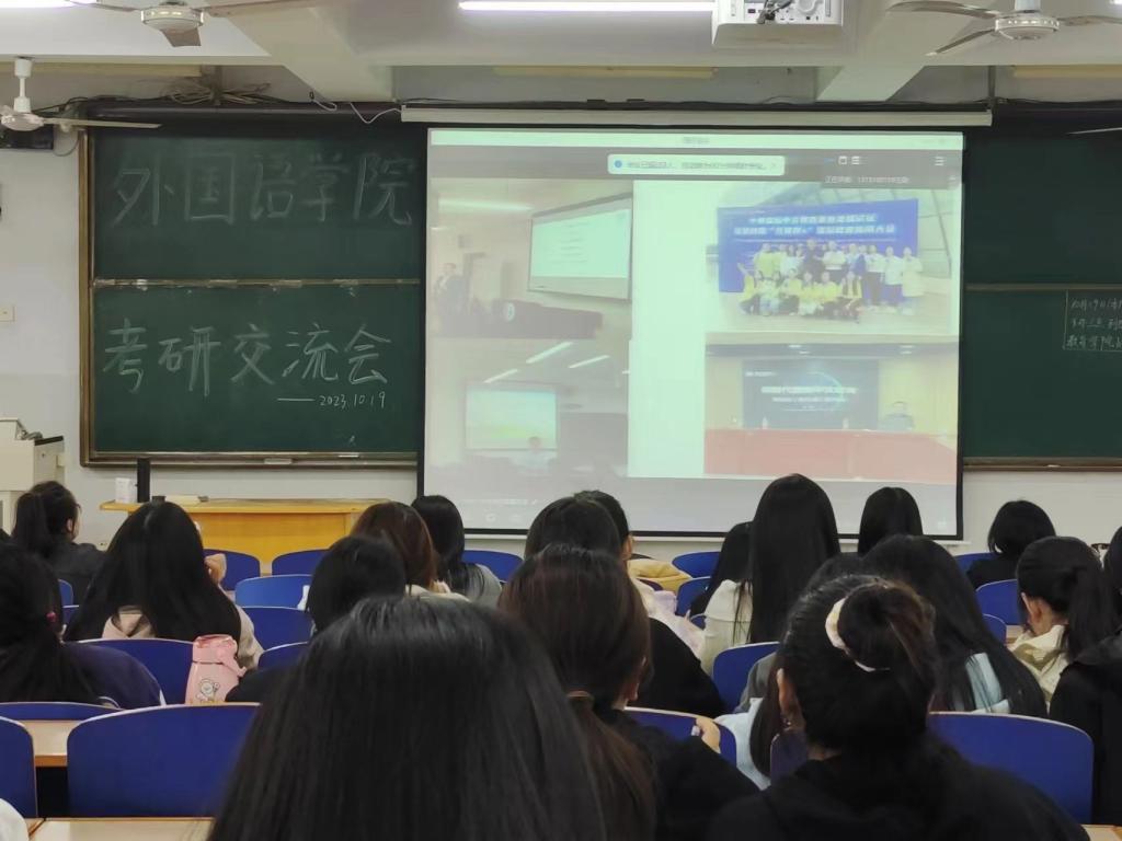 10月19日下午14点,yl8858永利集团英语教学部在综合楼212举办了2023年考研经验交流会,旨在帮助学生了解研究生入学考试备考的过程。与会人员为英语专业2021和2022级学生。