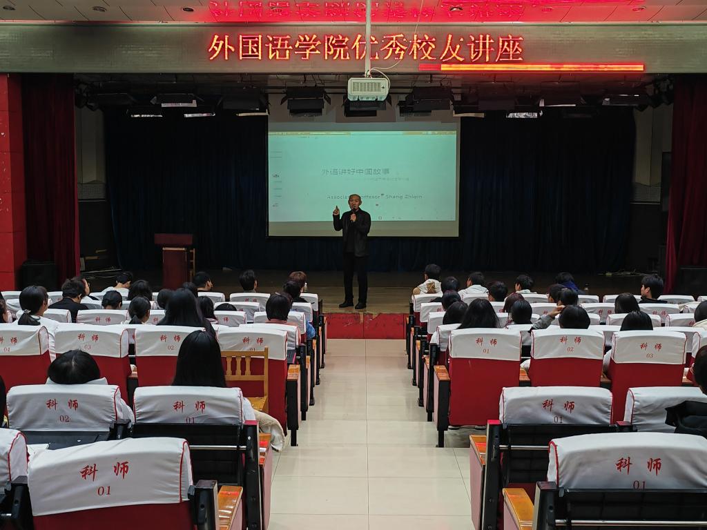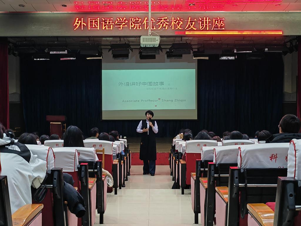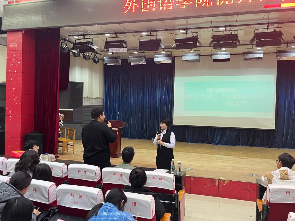 “雏既壮而能飞兮,乃衔食而反哺”。为进一步提升学生专业能力和综合素养,秉承“外语+”应用型人才培养理念,充分体现外语的“学以致用”原则,提升学生用外语“讲好中国故事”的意识和能力,增强文化自信,yl8858永利集团于11月8日邀请优秀校友尚志芹(河北建材职业技术学院副教授、对外汉语教学国际汉语高级教师、国家高级英文导游员、河北省英语导游考官、河北省“师德标兵”、全国第十三批援藏导游员西藏自治区“先进个人”)在开发区校区综合楼二楼报告厅进行针对教师资格证和外语导游考试的讲座。