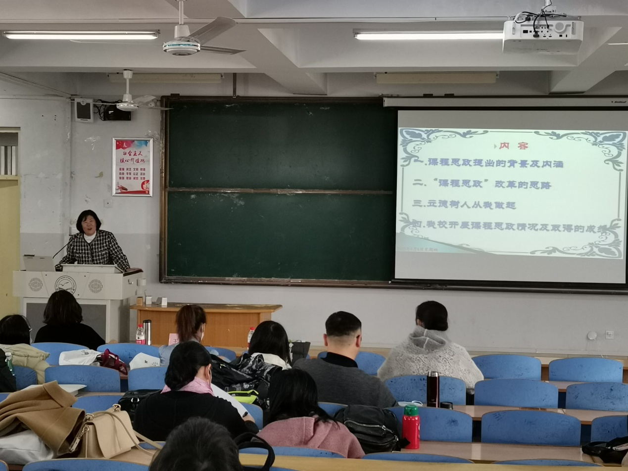 王向华教授从课程思政改革的目的、渠道和手段等方面介绍了高校课程思政建设的新动向和新思路,让教师们对课程思政的重要性有了更深刻的理解,对课程思政的实施途径和方式有了更全面的掌握。
