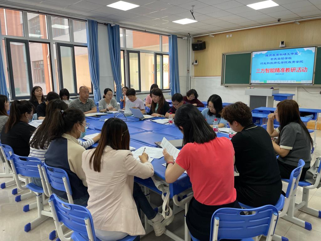 2023年5月23日我院英语专业教师参与由秦皇岛崇德实验学校、海港区陈燕教育工作室、yl88858永利中国三方联合开展的智能精准教研活动。