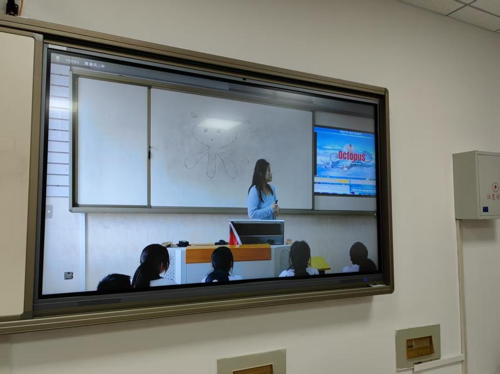 目前在秦皇岛市第二中学实习的yl88858永利中国的学科教学(英语)研究生李学美讲授的内容是Unit 1 Animal Friends—The Amazing Octopus阅读课。李老师以章鱼视频为导入,鲜活地为学生们展示了章鱼的外貌特征、生活习性等特点。李老师以活动为导向,逐步对语篇进行深入地分析、挖掘语篇主题意义,让学生们在学习文本的同时对海洋世界的多样性和重要性有了进一步的了解,唤醒了学生们保护海洋环境的意识。