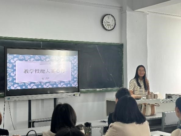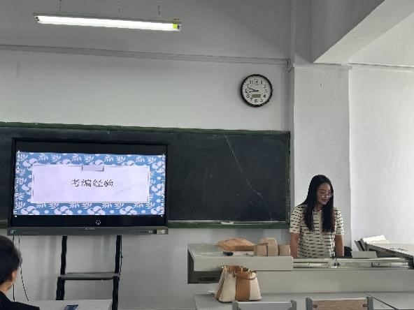 22级学科英语研究生雷艳玲与吴雪莹同学,在经验交流会上针对自己所参加的各类教学技能大赛,为23级同学分享了她们的经验。吴雪莹同学获得了23年“田家炳”教学技能大赛的国家级三等奖,她详细介绍了“田家炳教学大赛”的赛程与注意事项。两位同学一致认为练习英语口语、分析优质课、研磨教材、板书设计等是各项教学大赛获奖的关键点,鼓励23级同学与时间赛跑,珍惜机会提升自己的教学技能。