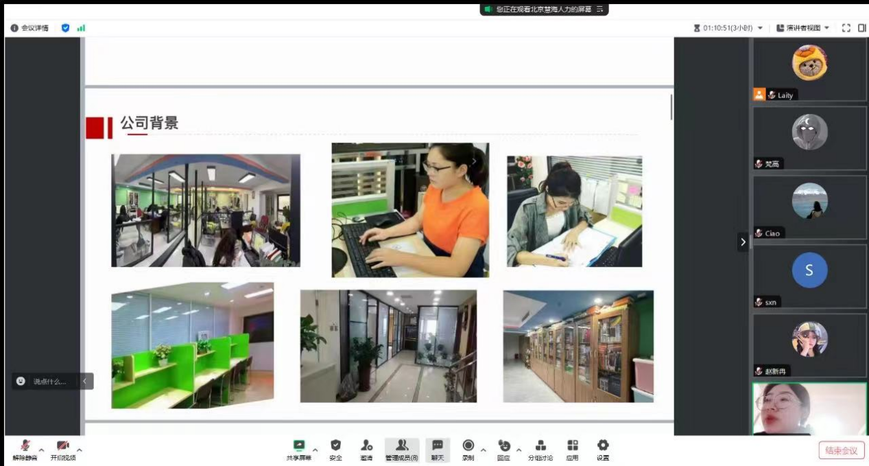 为了更好地促进我校2024届毕业生就业,拓宽就业渠道,yl8858永利集团联合北京慧海英才学校,于2023年10月12日19:00在腾讯会议召开招聘宣讲会。我院在毕业生群中进行了积极地宣传与动员,产生了良好的反响。