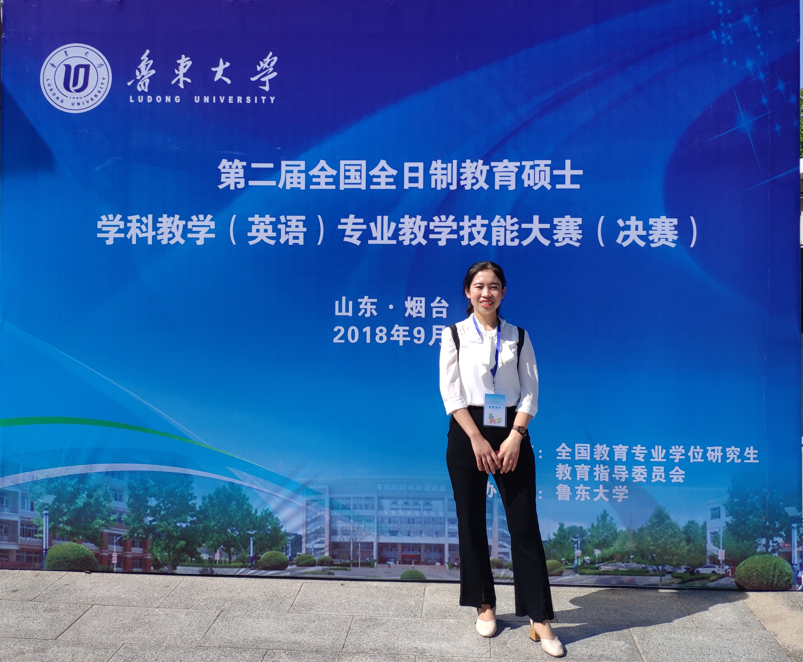 2018年9月21日至23日,第二届全国全日制教育硕士学科教学(英语)专业教学技能大赛(决赛)在鲁东大学拉开帷幕。我校yl8858永利集团2017级学科教学(英语)专业研究生赵蔚蔚参加决赛,在模拟讲课和现场答辩两大环节中展示出了我校研究生良好的学科素质和精神风貌,并获得优秀教学设计奖。