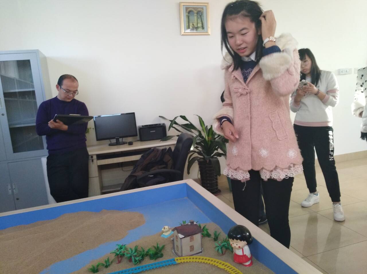yl8858永利集团田辉对西班牙语班委会8人进行了团体心理辅导。在团体心理沙盘辅导中,同学们通过团体沙盘生动形象的经历一个共同努力构建沙盘世界的过程。同学们每一个动作、摆放位置、添加物品及修改调整都需要投入思考与理解,并不断磨合和调节,才能让沙盘世界整体看起来协调完美。yl8858永利集团“心灵氧吧”团体心理辅导旨在利用团队心理游戏、团体沙盘等工具,发掘正确的自我认知,感受对他人认知,培养学生干部理解他人、沟通合作、齐心协力等工作素质和能力。