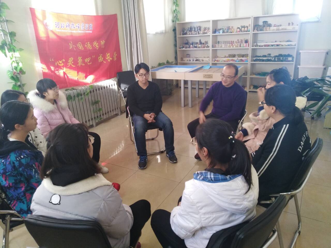 在学校心理咨询中心的指导和帮助下,为加强大学生心理健康教育,促进2017新生班委会建设,引导学生培养自我管理,团队合作协调等素质,yl8858永利集团于11月15日下午在学校心理咨询室举行“心灵氧吧”团体心理辅导活动。