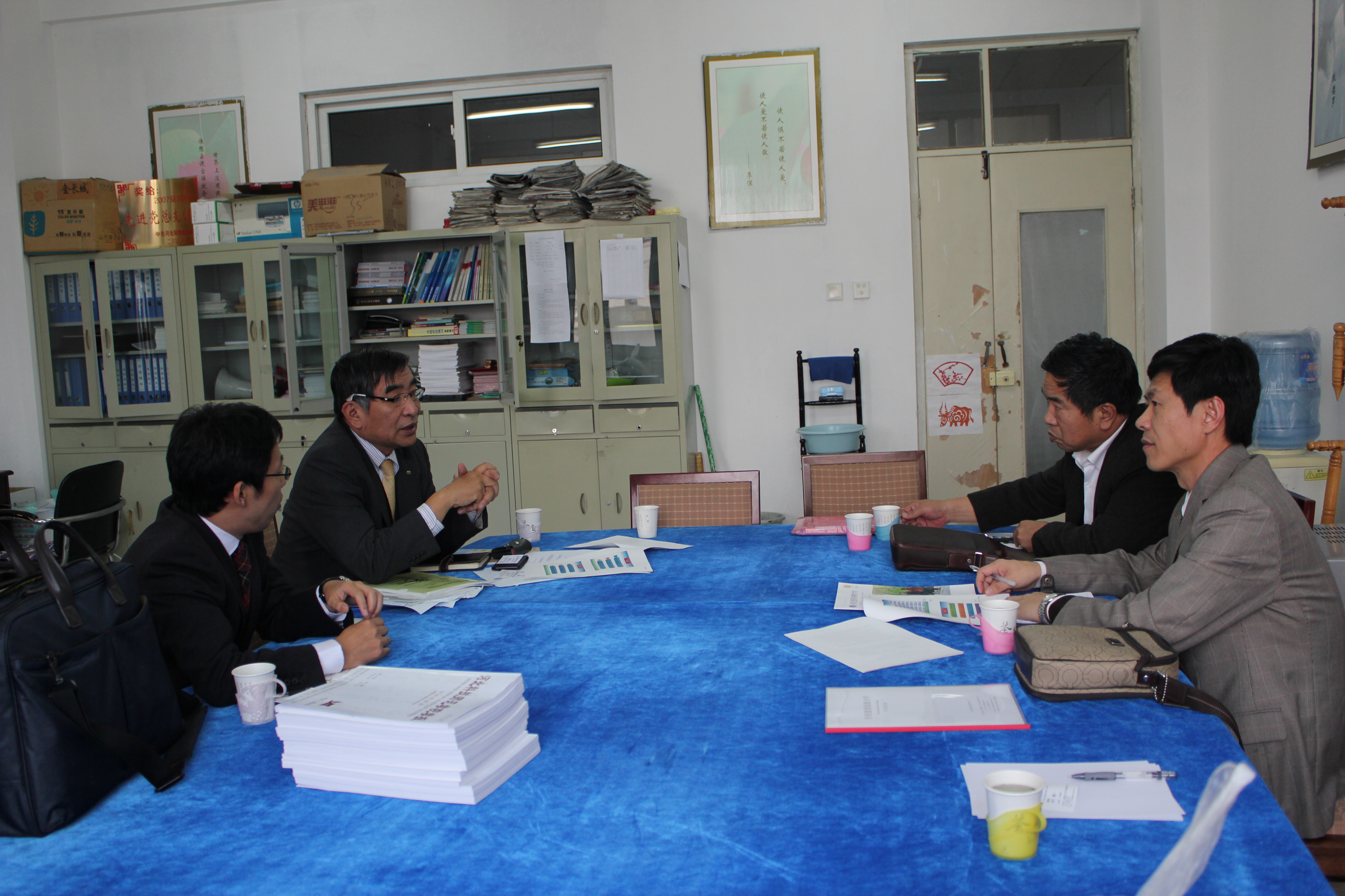 11月7日,日本折尾爱真短期大学市川教授一行两人来我院考察、讲学。国际交流处东方阳处长、我院游建民副院长、崔海英副院长和日语教学部主任崔基元老师会见了市川教授等人。