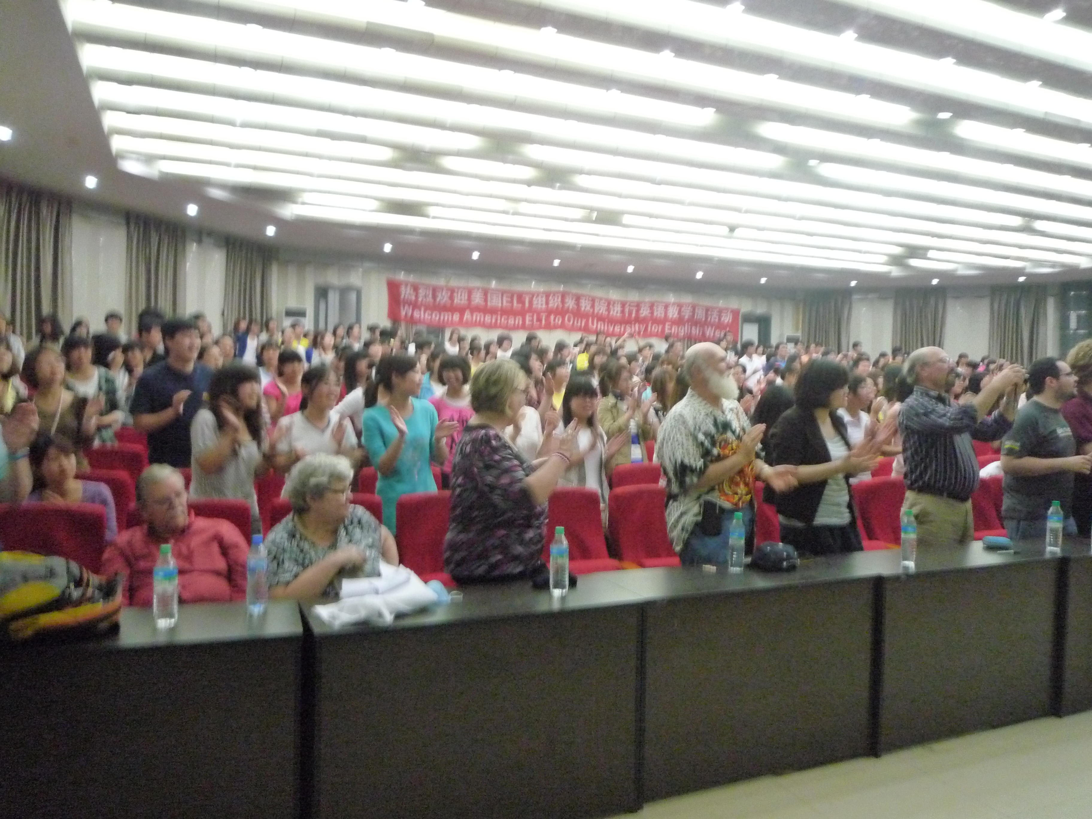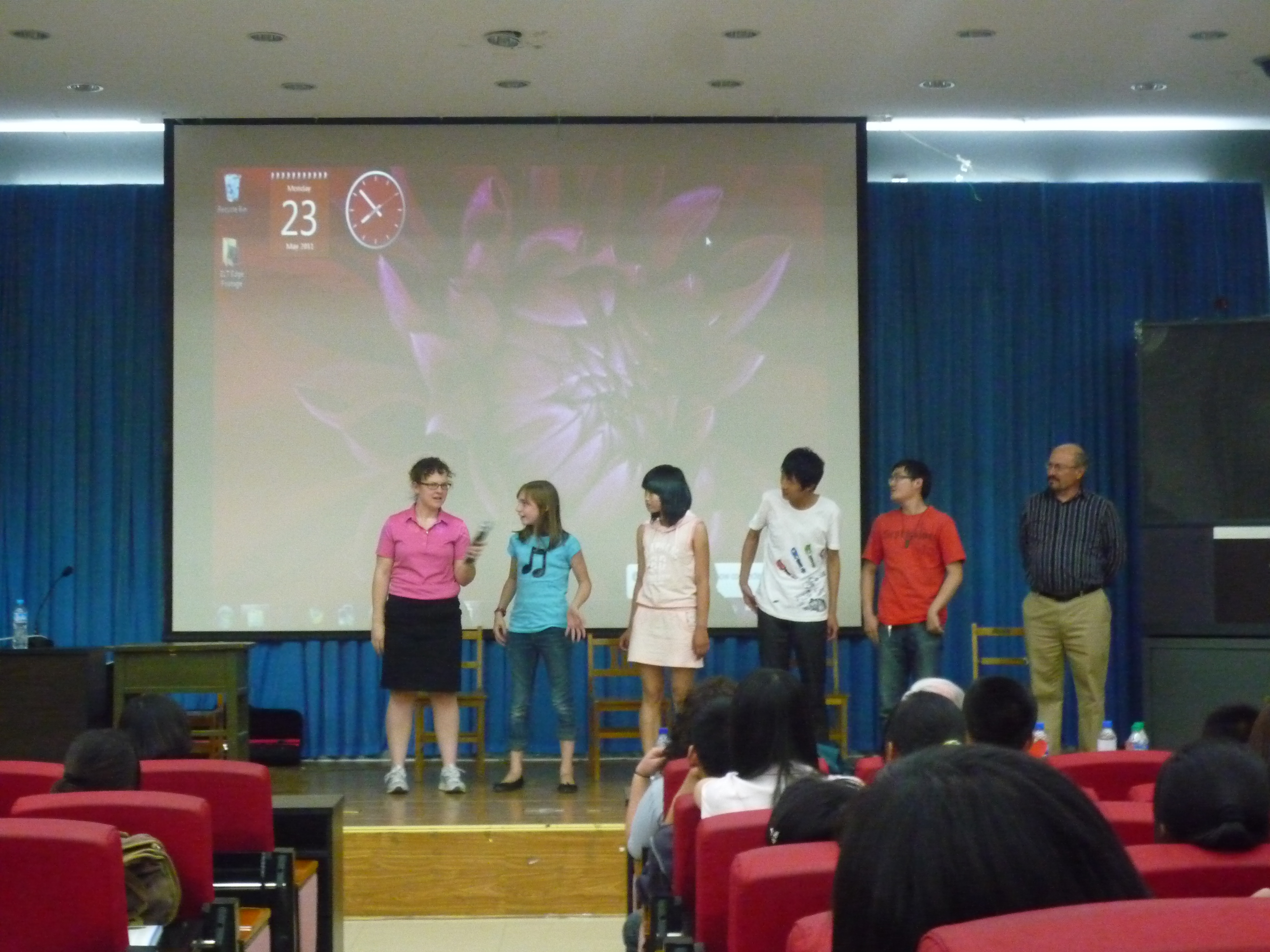 2011年5月23日7:30yl8858永利集团在开发区校区报告厅迎来了ELT交流团的第三场报告演出。交流团的songs、dramas、talks等多种演出形式受到了同学们热情欢迎,活动过程中学生们积极参与、互动气氛热烈。