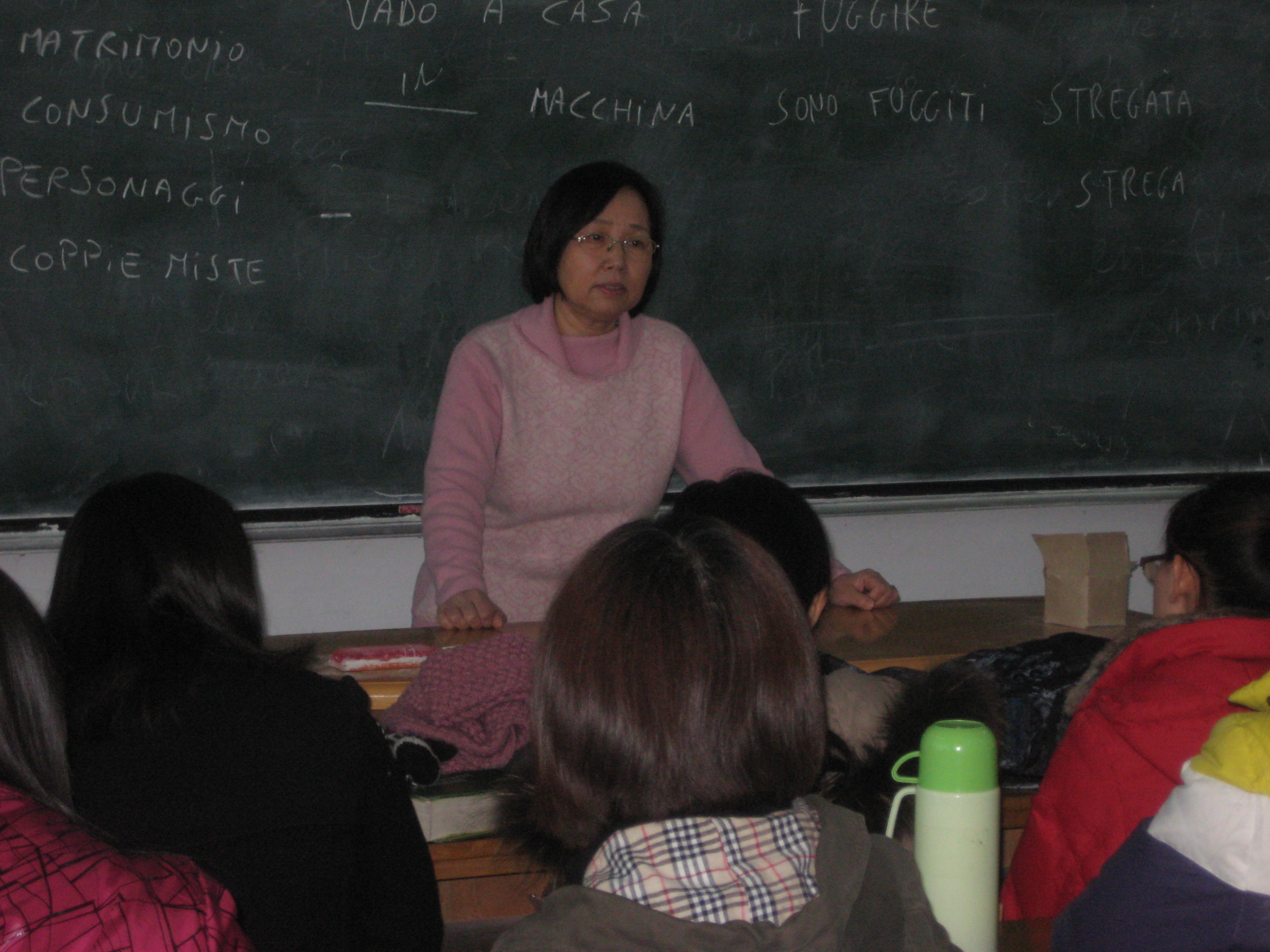 2010年12月28日,我院意大利语学科带头人赵秀英教授来到课堂指导教学工作。从早上8点中开始,赵秀英教授在邵丽君院长的陪同下先后听了我院的三位意大利语教师的课程:马越、马兰老师的10级《基础意大利语》,孙晓萌老师的09级《意大利语听力》;以及三位外籍教师的课程:Alberto的08级《意大利语口语》、Luca的09级《意大利语口语》和Stefano的08级《高级意大利语》。赵教授分别对六个听课班级的课堂教学情况进行了精彩的现场点评。从意大利语的发音规律到意大利语语法、再到中意语言文化的对比,赵教授风趣幽默的点评受到了学生的普遍欢迎。她对我院意大利语学科建设提出的意见和建议也使年轻教师们也受益匪浅。