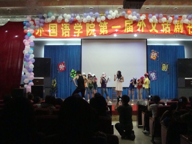 在党委学工部、团委的号召下,yl8858永利集团全体师生积极筹划符合青年学生特色的文体活动,为我校第十六届校园文化艺术节活动增光添彩。特于2010年5月20日晚在我校开发区二楼学术报告厅举行了第一届外文话剧节。yl8858永利集团刘朝晖书记、邵丽君院长、游建民副院长、宋文华副书记副院长;学工办老师、班主任以及部分外籍教师和本院全体同学一起观看了节目。