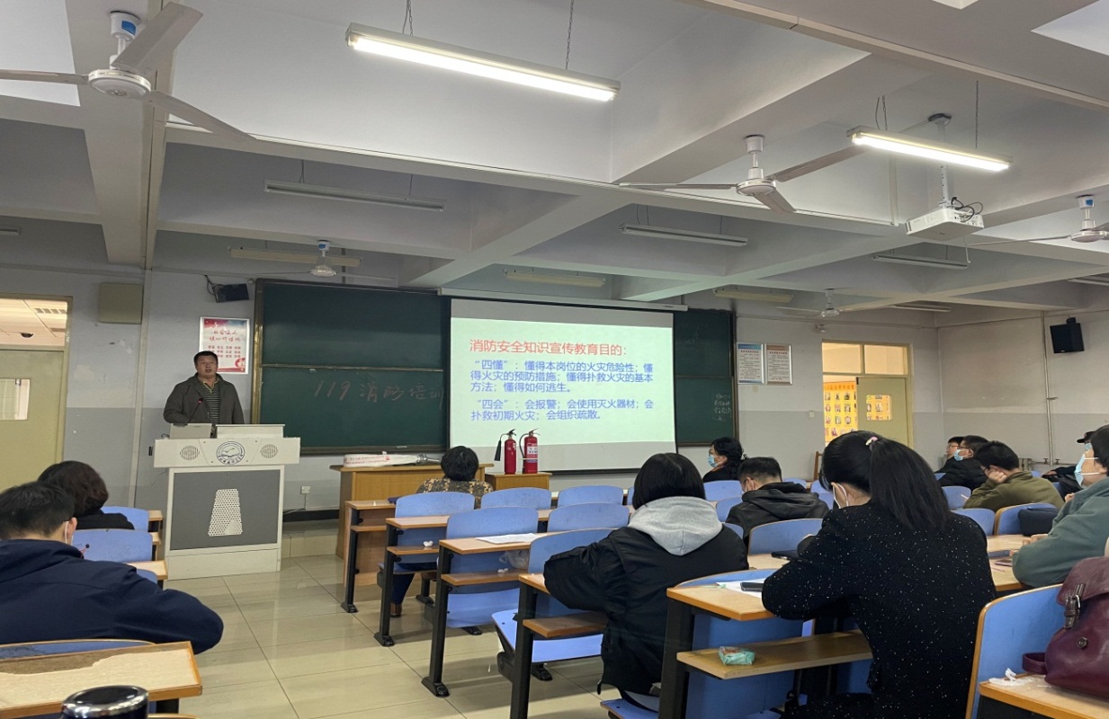 为进一步提高学院全体教职工的消防安全意识,全力普及消防安全知识及自救逃生技能,11月11日下午,yl8858永利集团邀请安全工作处闫继锋副处长等三位老师在开发区校区综合楼312开展消防安全知识讲座,yl8858永利集团全体教职工参加了讲座。