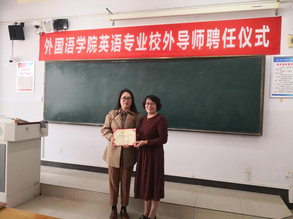 近几年来,四位校外导师通过yl8858永利集团“名师进课堂”、“名师大讲堂”、“名师工作坊”等系列活动指导英语师范生的教师教育课程学习、微格实训、教研活动等,积极参与我院师范生的协同培养。yl8858永利集团领导班子成员一一为四位导师颁发了证书,崔院长代表yl8858永利集团衷心感谢各位导师在协同育人机制下为我院师范生培养做出的巨大贡献,也希望各位校外导师继续参与我院师范生的培养工作,共同提升英语师范生的培养质量。