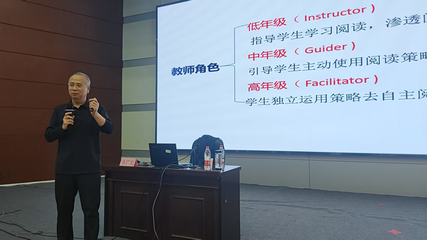 2025年5月13日,国培专家孔广文老师做了题为《核心素养下的小学英语绘本教学》的专题讲座。孔广文老师立足《义务教育英语课程标准(2022年版)》相关要求,强调以主题为引领,以语篇为依托,通过“学习理解—应用实践—迁移创新”三类活动开展小学英语绘本教学,实现学生语言能力与思维品质的协同发展。 (编辑:王小琳 审核:范学荣)
