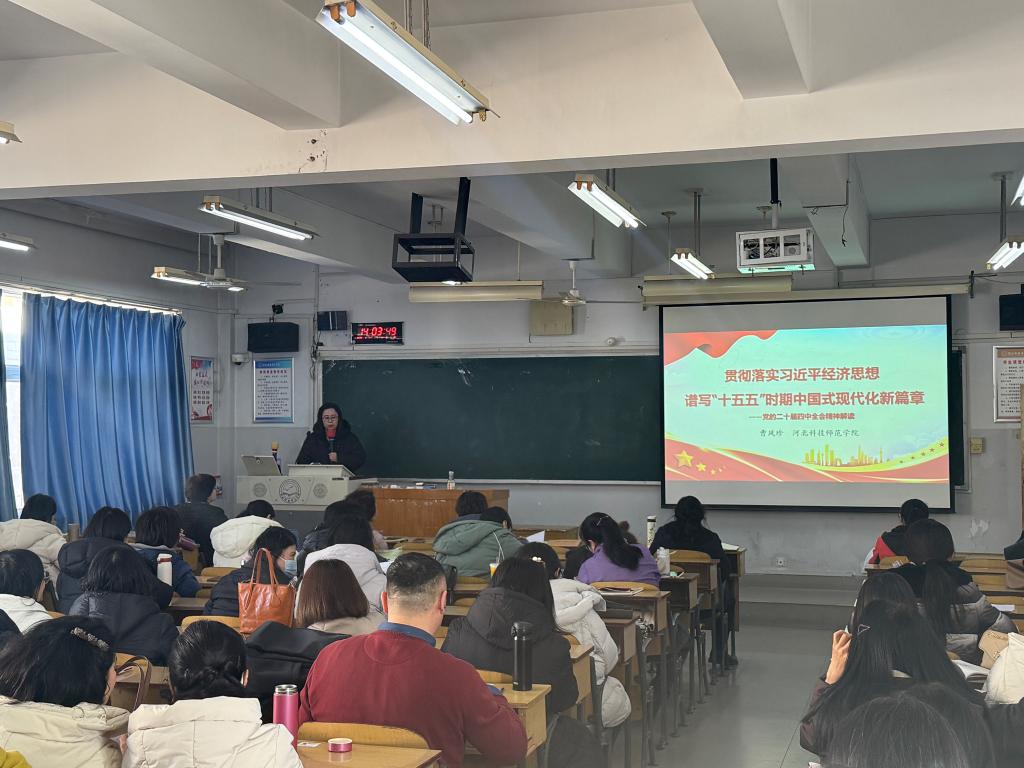 为深入学习贯彻党的二十届四中全会精神,精准把握“十五五”规划核心要义,12月25日下午,yl8858永利集团特邀马克思主义学院曹凤珍博士,为全体教师作“贯彻落实习近平经济思想,谱写‘十五五’时期中国式现代化新篇章”专题宣讲。