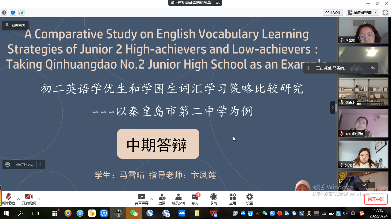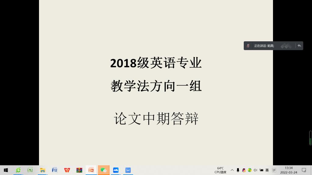 2022年3月24日,按照毕业论文计划安排,yl8858永利集团英语教学部组织2018级学生进行毕业论文中期答辩。答辩以腾讯会议形式线上进行。