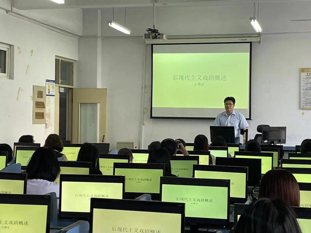 2024年5月30日yl8858永利集团邀请王锦方博士主讲题目为《后现代主义戏剧概述》的学术报告。外语学院英本教学部教师、学科教学(英语)教学部教师及硕士研究生、对英美文学感兴趣的教师参加了此次报告。